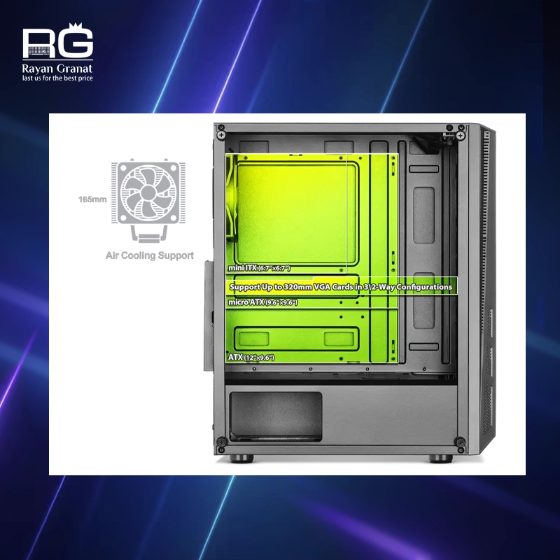 - دارای یک فن 120mm مجهز به نورپردازی FRGB در پشت کیس